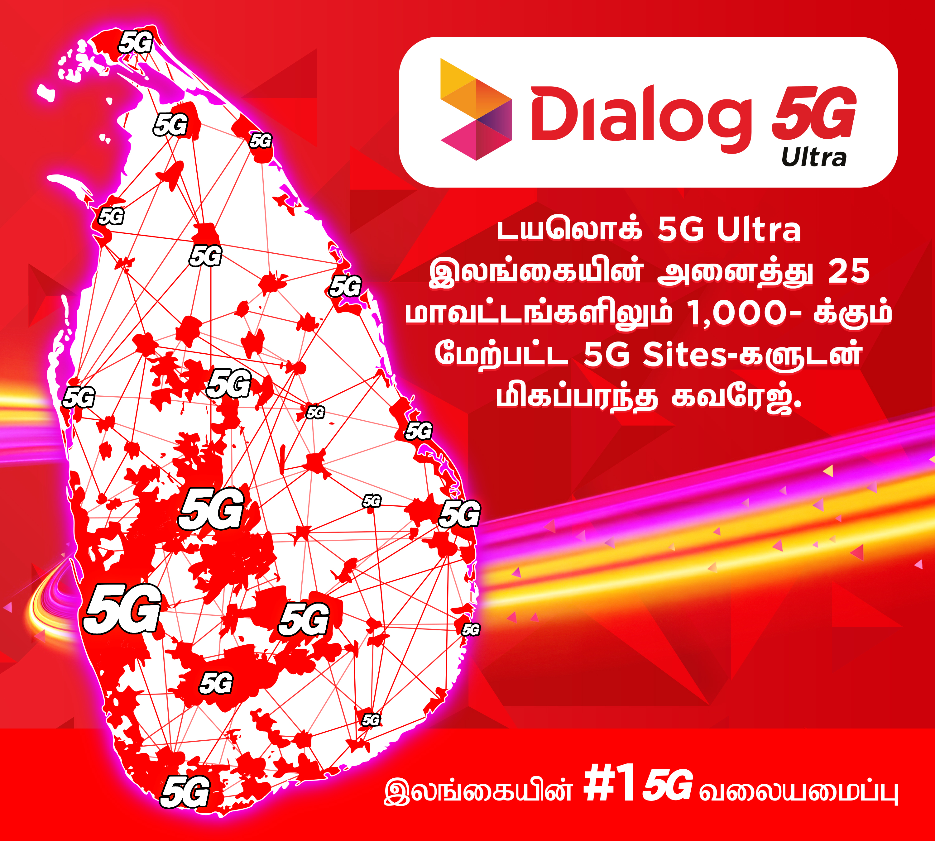 ஏற்கனவே 220-க்கும் மேற்பட்ட Sites மூலம் 1.5 மில்லியனுக்கும் அதிகமான சந்தாதாரர்களுக்கு 5G சேவையை வணிக ரீதியாக அறிமுகப்படுத்திய டயலொக் ஆசிஆட்டா பிஎல்சி, தற்போது அனைத்து மாவட்டங்களையும் உள்ளடக்கும் வகையில் தனது வலையமைப்பை துரிதமாக விரிவுபடுத்தியுள்ளது. இந்தத் தொடர்ச்சியான விரிவாக்கமானது, தனிநபர்கள், வணிகங்கள் மற்றும் சமூகங்கள் டிஜிட்டல் பொருளாதாரத்தில் மிகவும் ஆழமாகப் பங்களிக்க உதவும் நம்பகமான மற்றும் அதிவேக இணைப்பிற்கான அடித்தளத்தை பலப்படுத்துகிறது.
